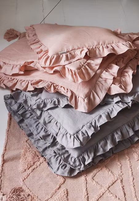 Fremstillet i fantastisk linned som garanterer en god søvn for barnet. Også pyntet med charmerende flæser langs kanten som får den til at se yndig ud i barnevognen eller vuggen. Dette sengesæt garanterer den højeste kvalitet for barnet fra første dag.