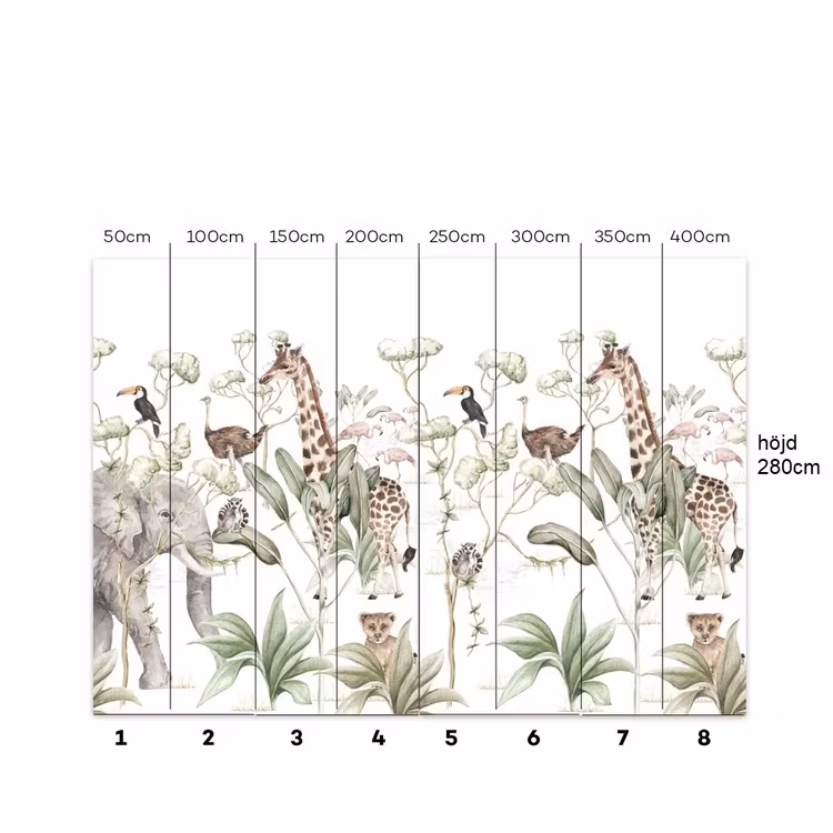 Mål: Tapetet er opdelt i baner (50x280 cm). Du bestiller nemt mål efter dine ønsker og væggens størrelse.