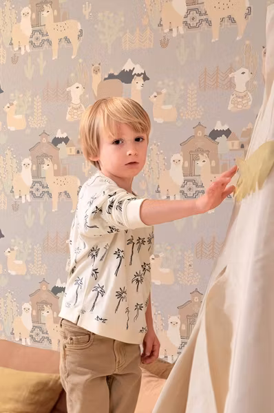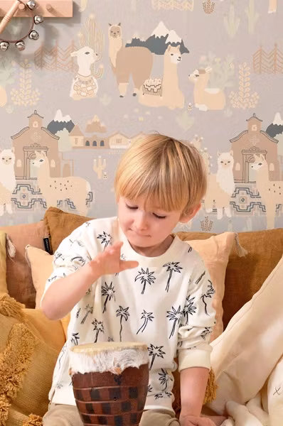 Majvillan, tapet Lama village, soft grey