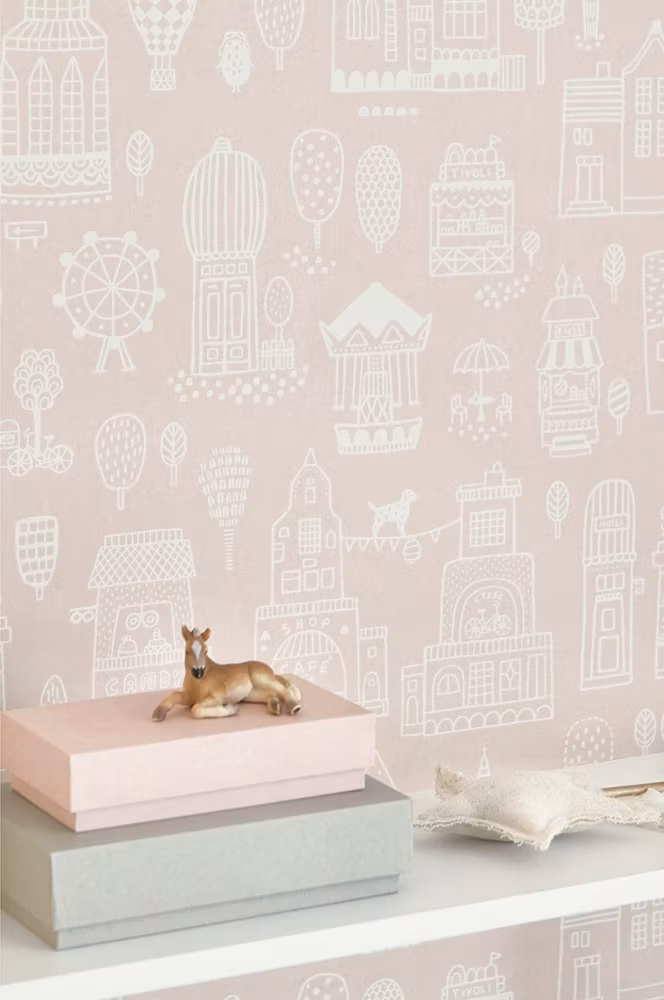 Majvillan, tapet Small town, dusty pink