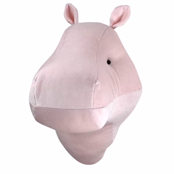 En skøn vægdekoration i form af en flodhest som er fantastisk blød og hyggelig.