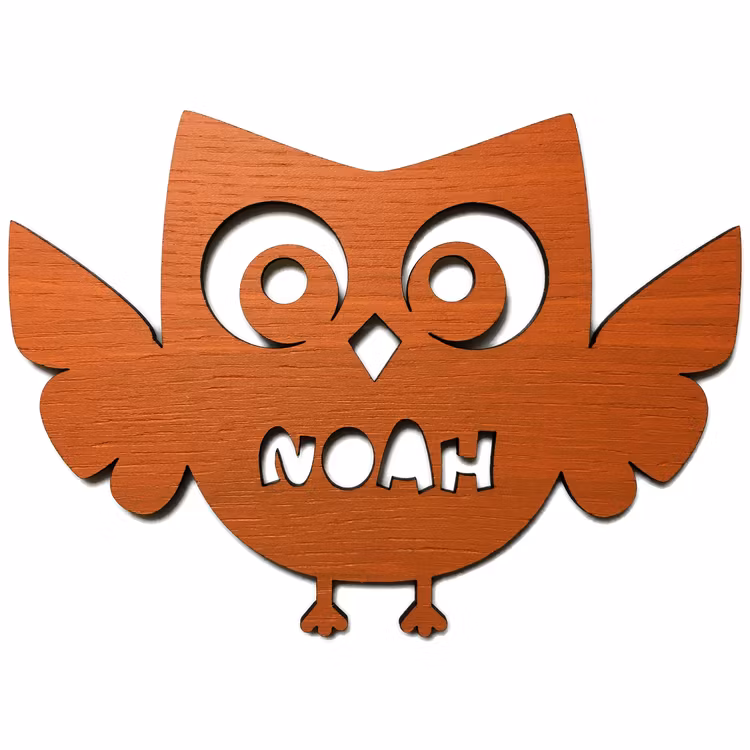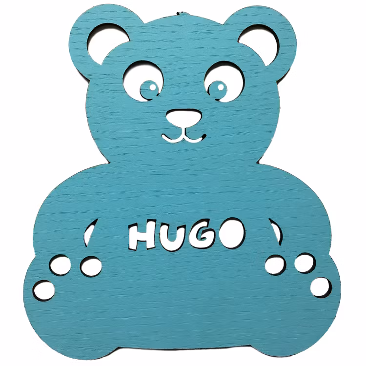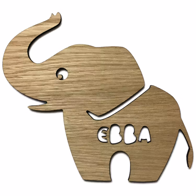 En fin og personlig figurskilt i træ med valgfrit navn. Passer perfekt på børneværelset eller som en dåbsdekoration.